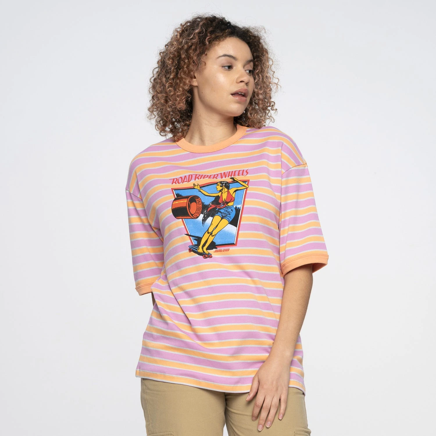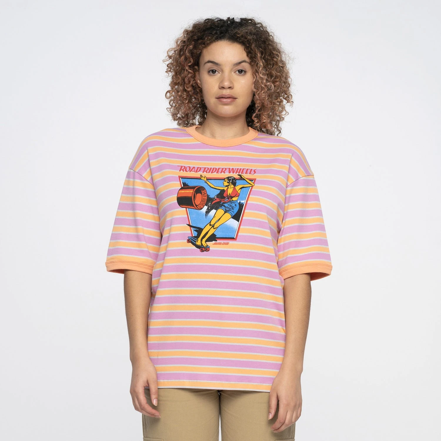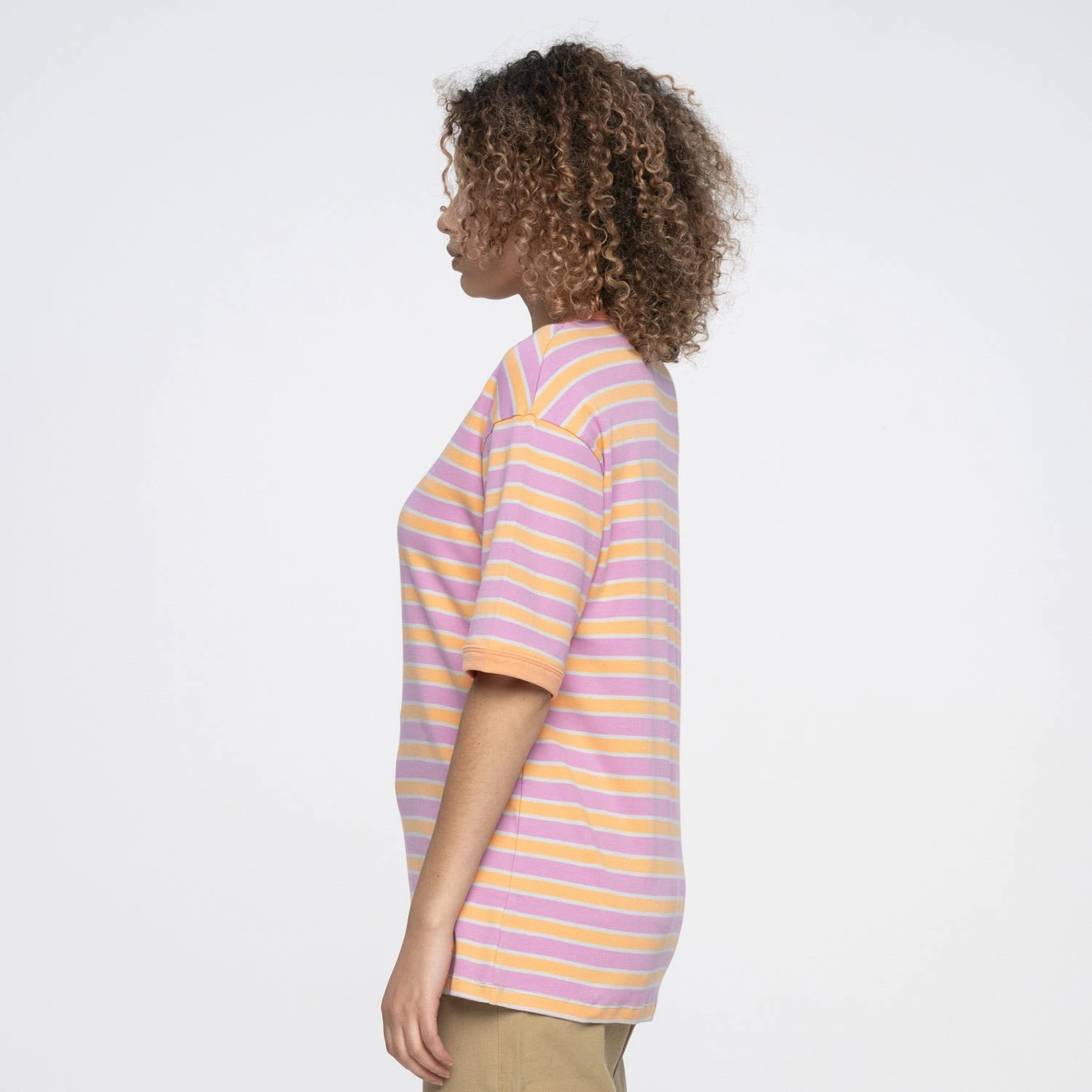 100% cotton, 180gsm interlock jersey, oversized fit, short sleeve t-shirt with knitted stripe and front print