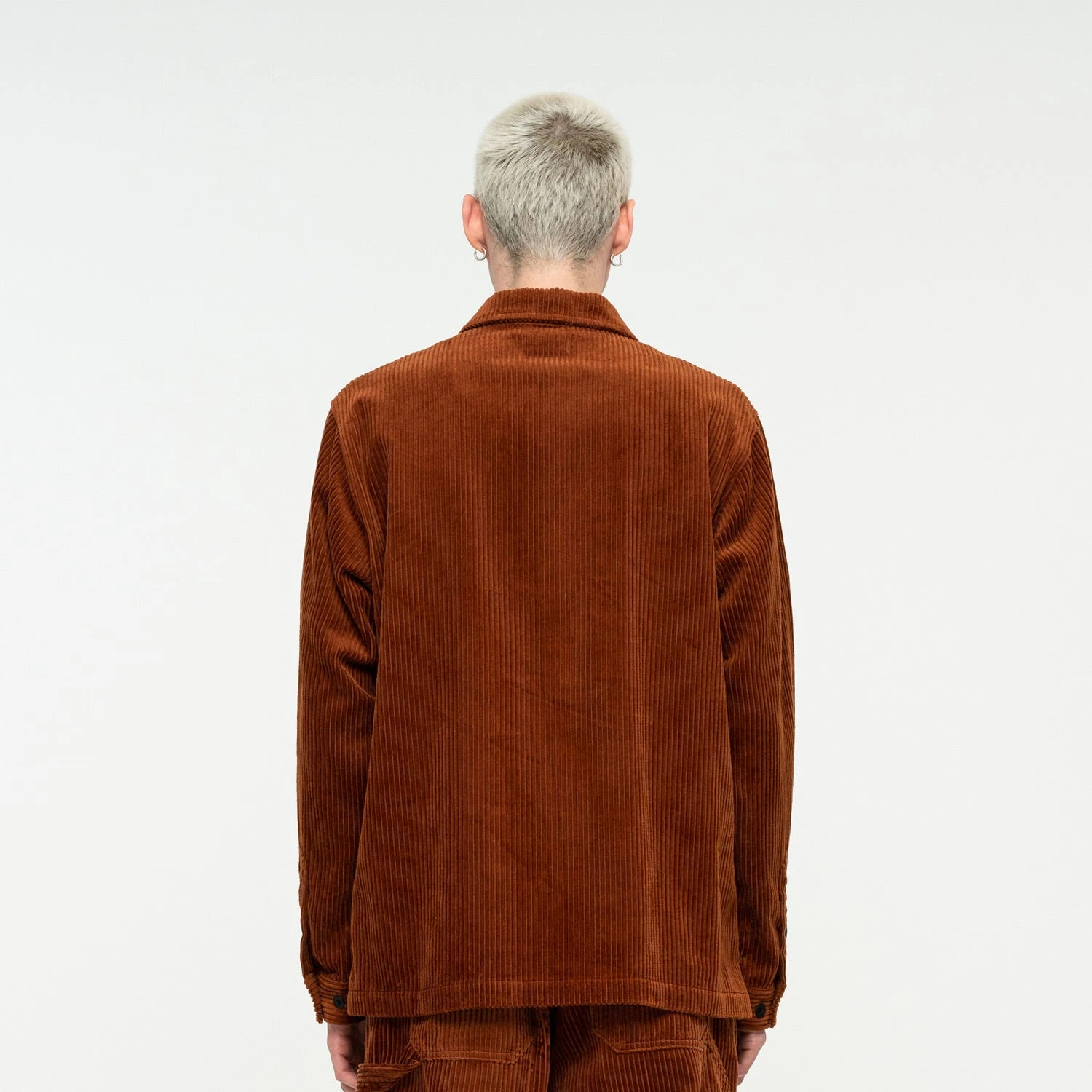 100% cotton cord, boxy fit, long sleeve overshirt, button up with twin chest pockets and front woven label
