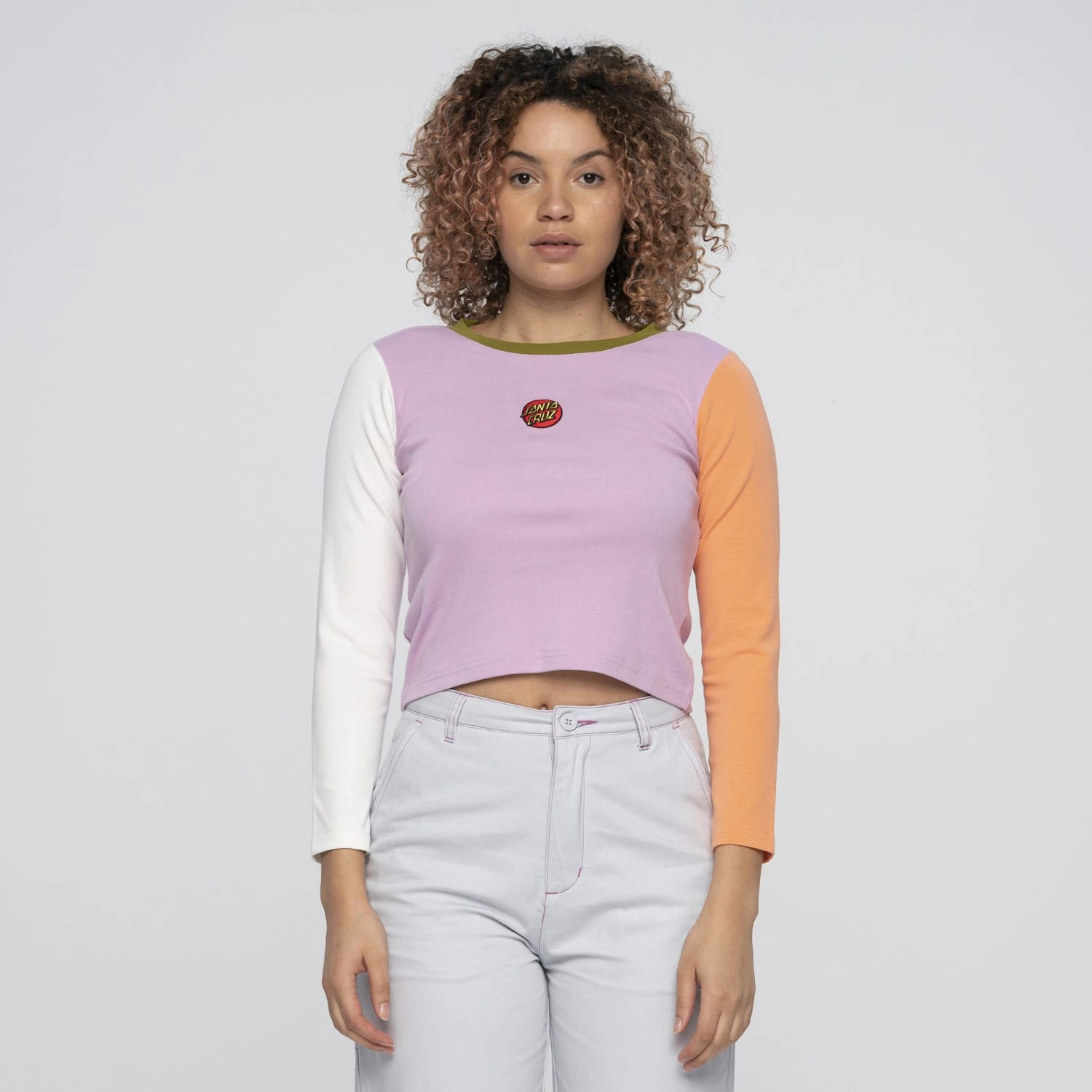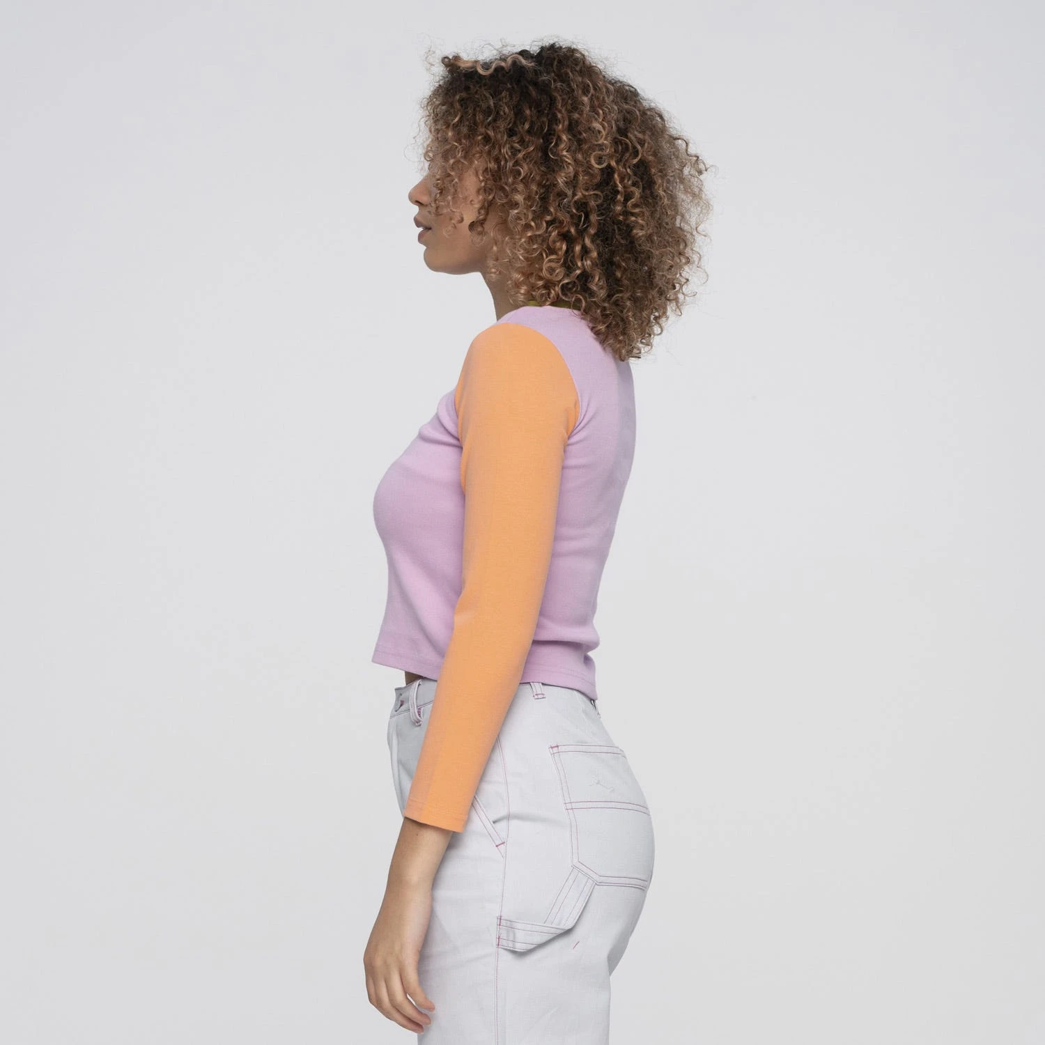 70% cotton, 30% polyester, 210gsm rib jersey, cropped fit, long sleeve t-shirt with front embroidery