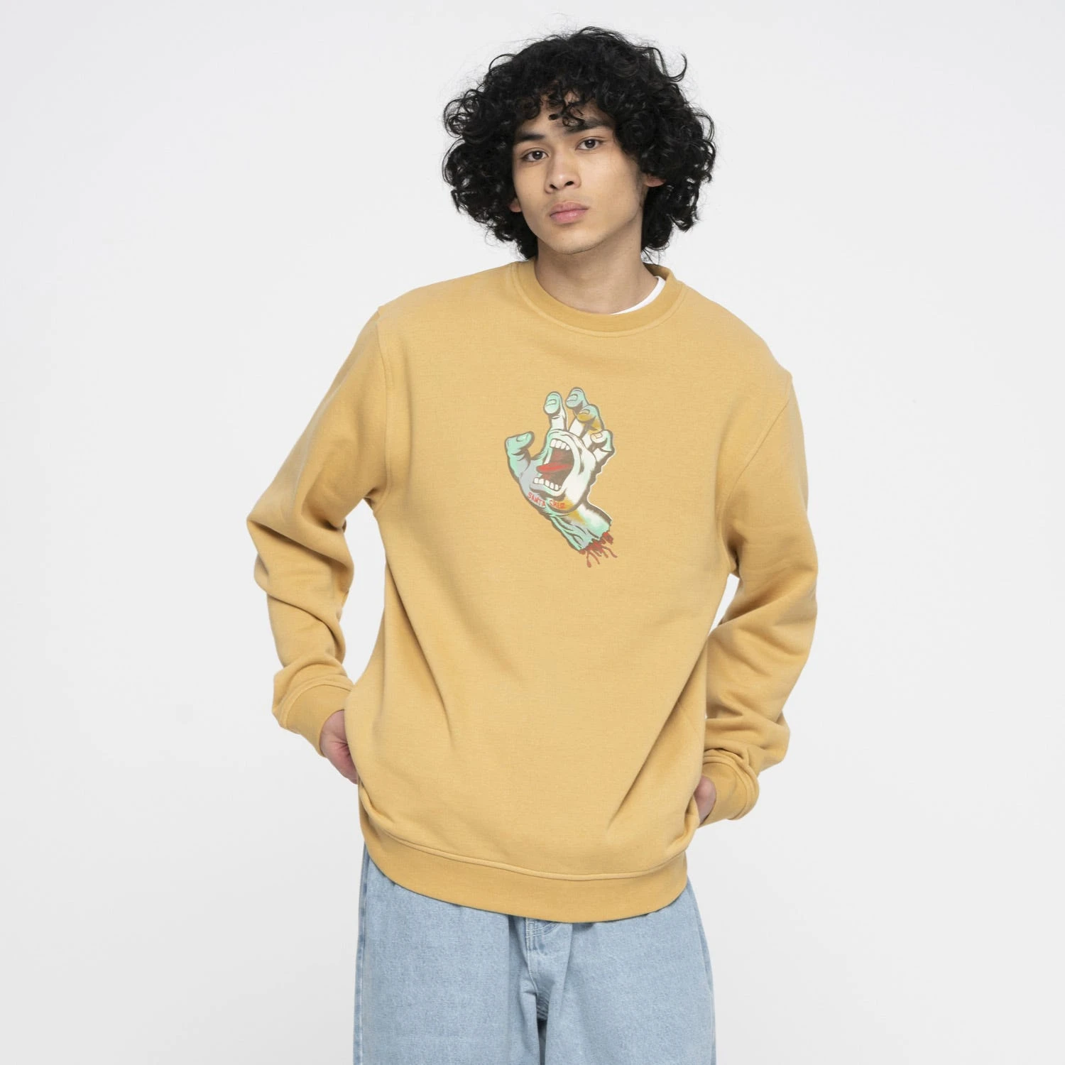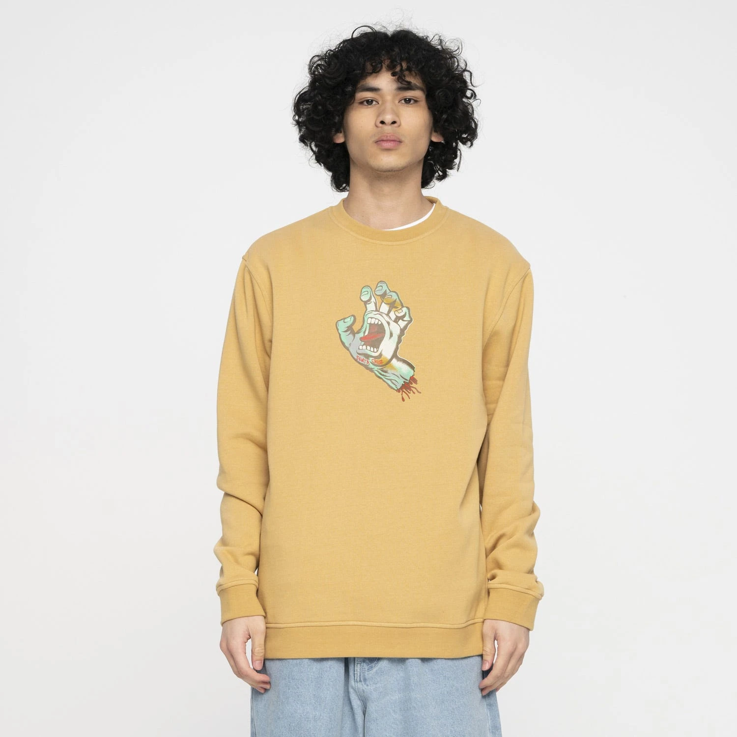 80% cotton, 20% polyester 330gsm brushed fleece, regular fit, crew sweatshirt with front print