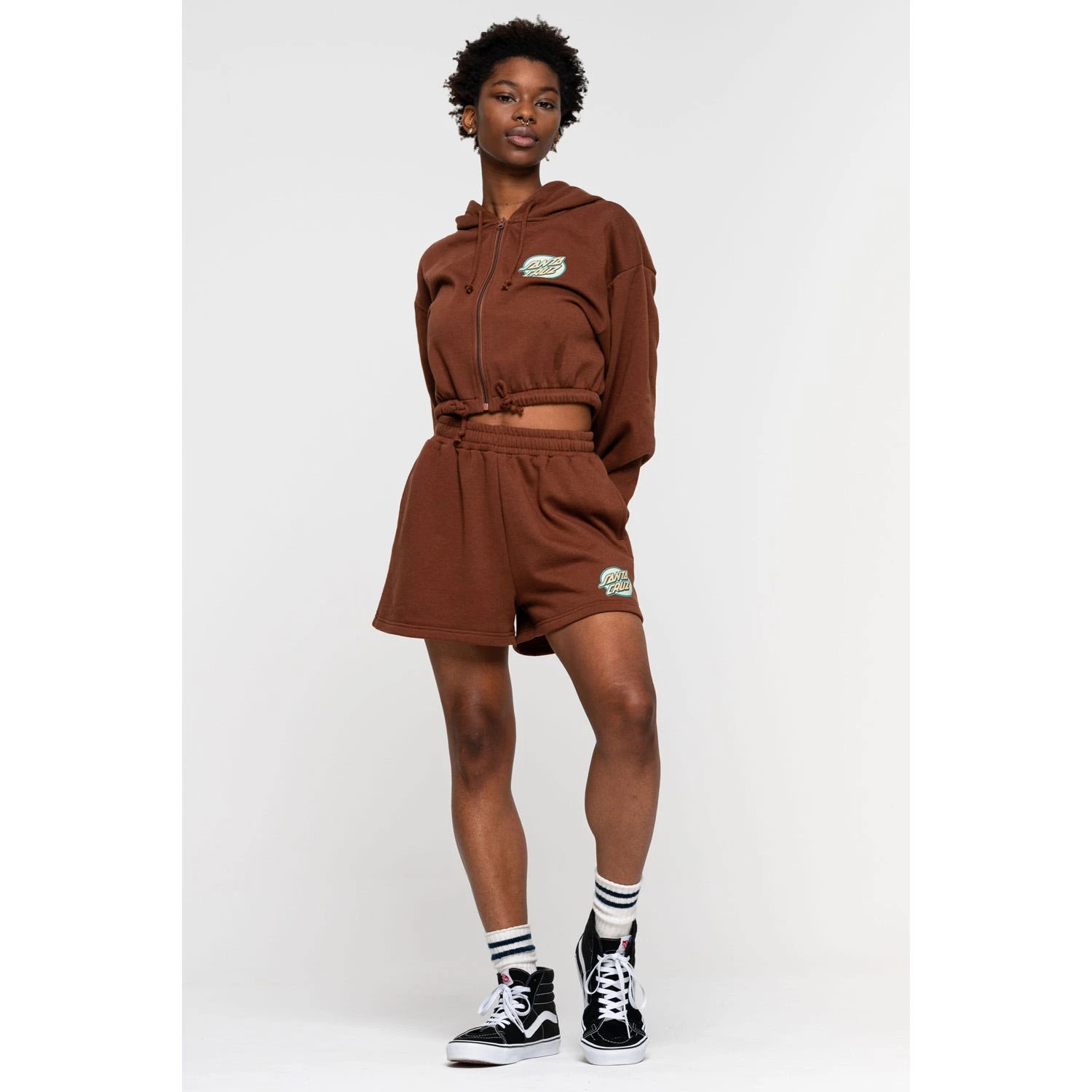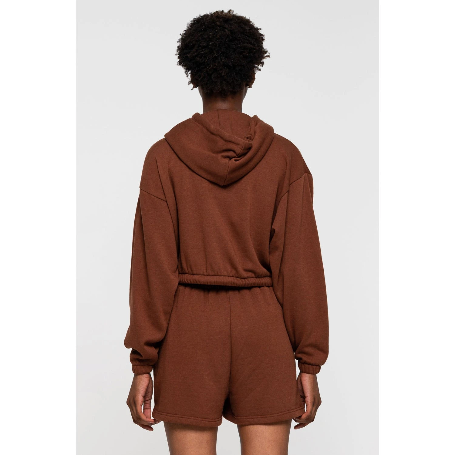 80% cotton, 20% polyester, 235gsm brushed fleece, cropped fit, zip hooded sweatshirt with pouch pocket with left chest print