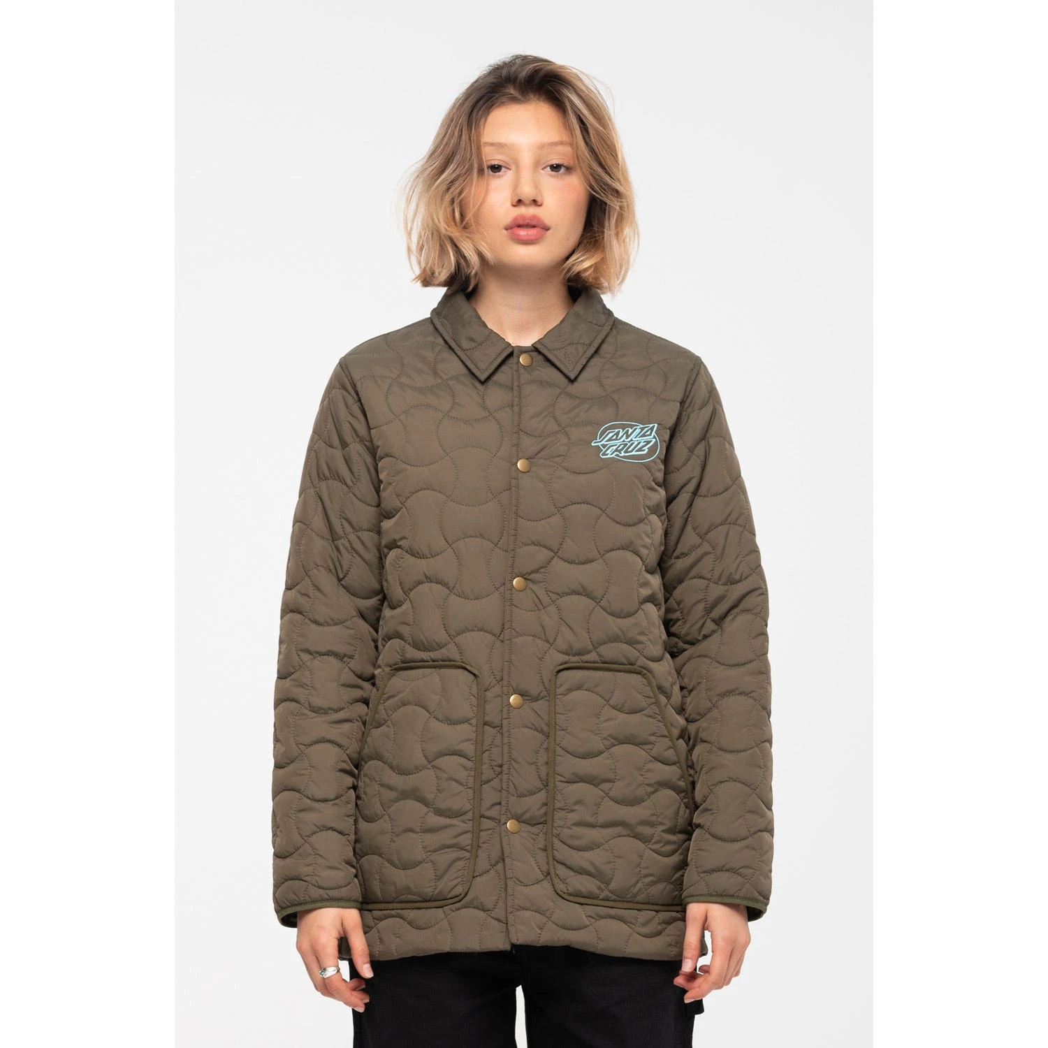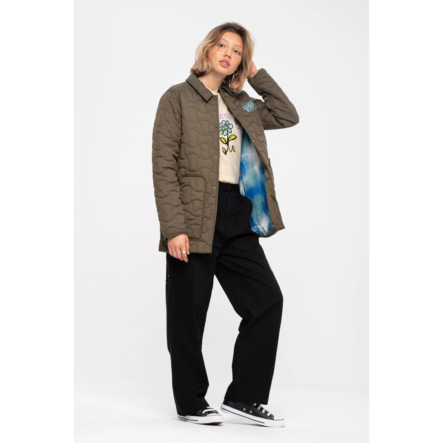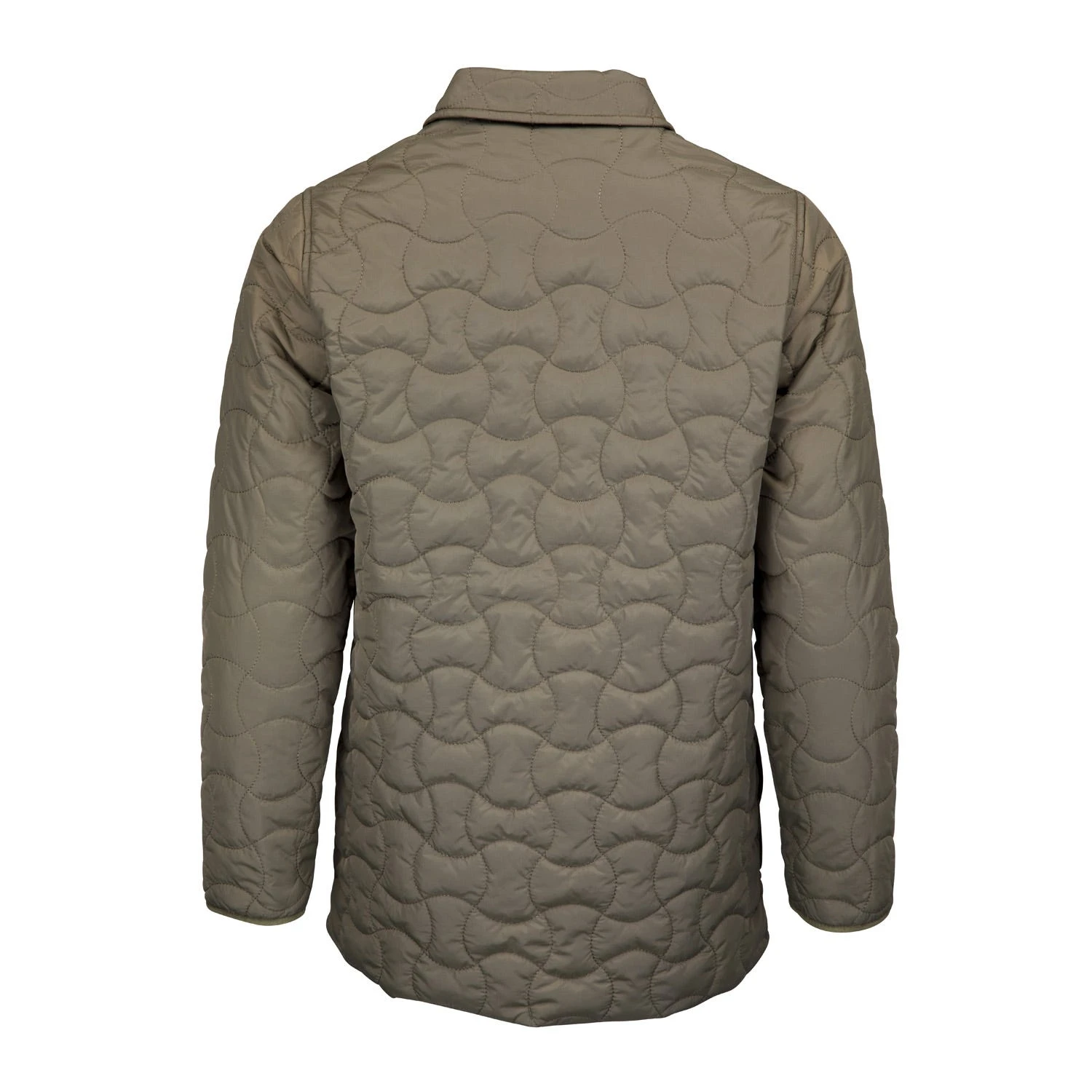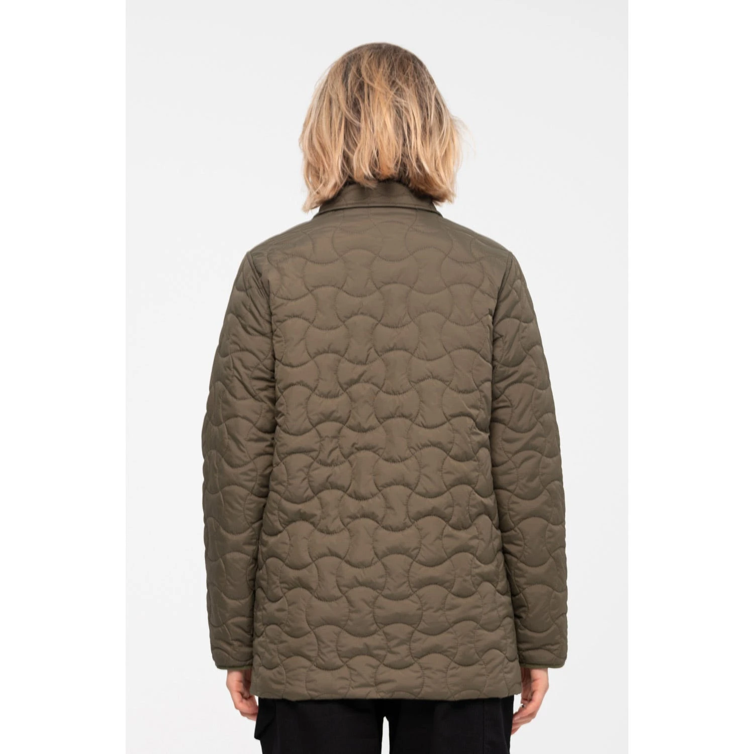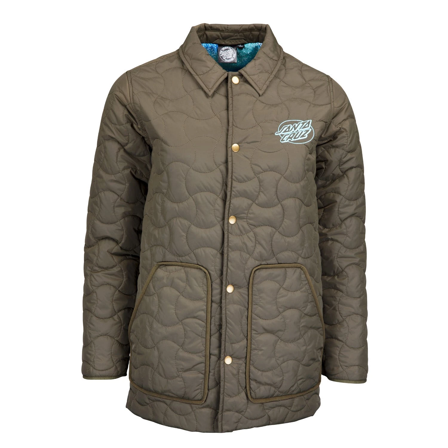 100% polyester, water-resistant, quilted snap front jacket, front pockets and left chest embroidery