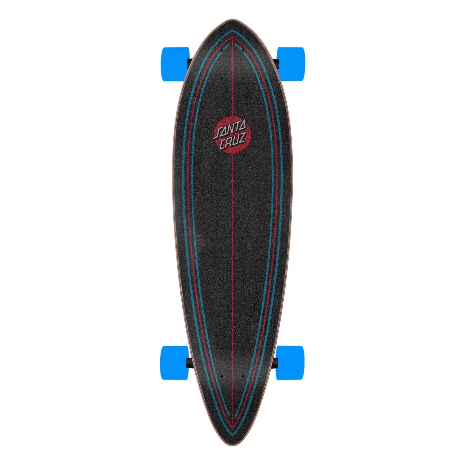Santa Cruz Skateboards Screaming Hand Pintail Longboard Cruzer with smaller pintail shape on 9 ply deck with Bullet 160mm reverse kingpin trucks and Santa Cruz branded 60mm 78a Slime Balls wheels.