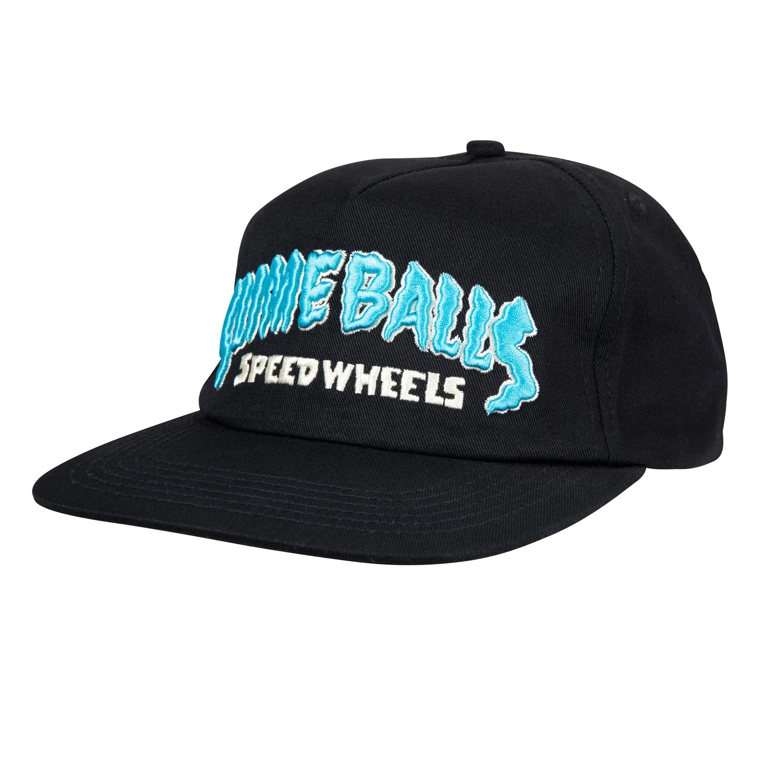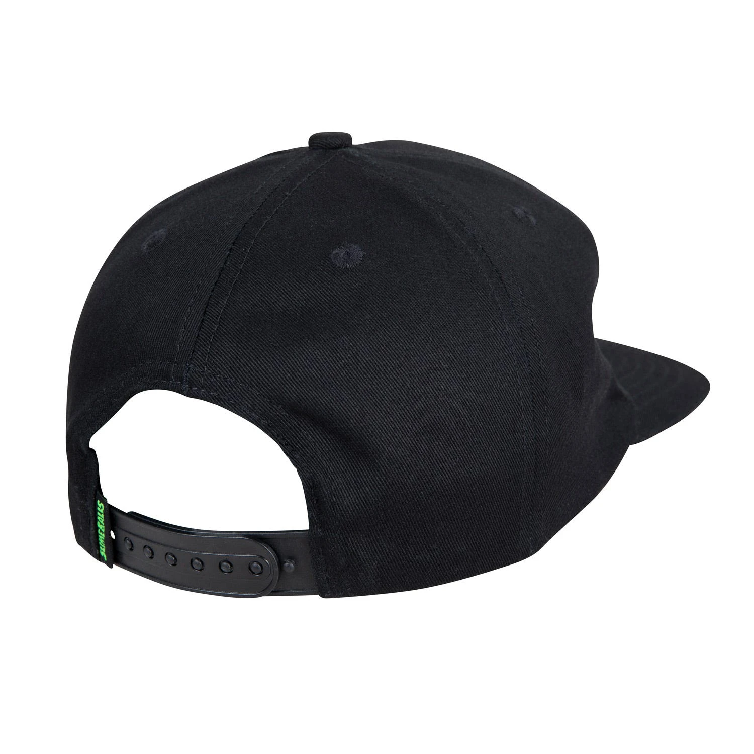 100% cotton twill snapback cap with front embroidery, woven label and adjustable snap fastening