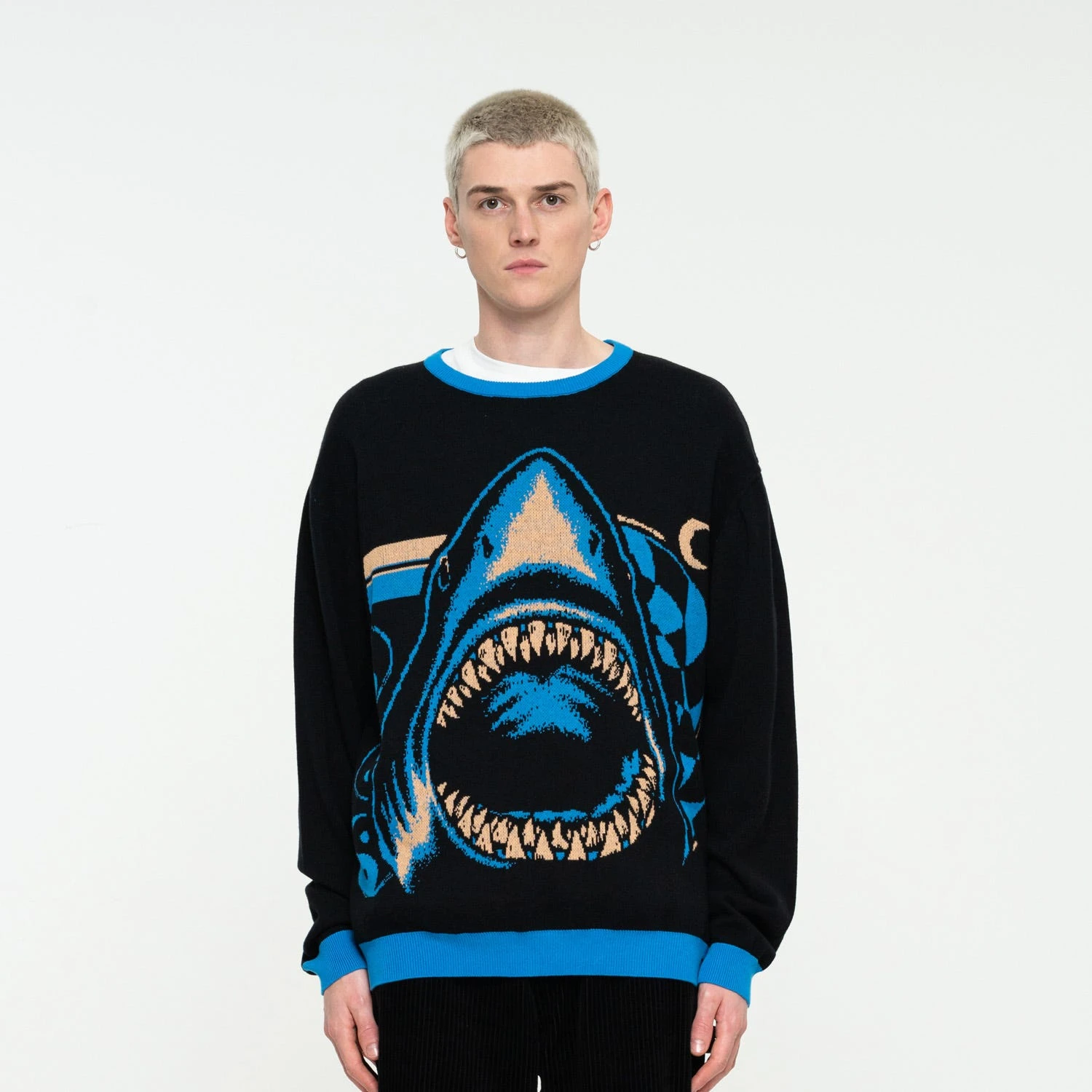 100% cotton knitted crew, regular fit, with front jacquard and front woven label