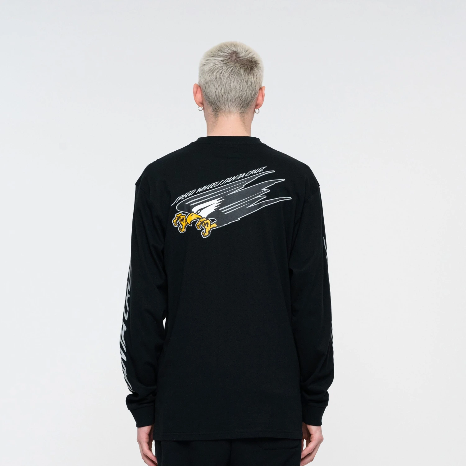 100% cotton, 200gsm jersey, regular fit, long sleeve t-shirt with left chest print, back print and sleeve print